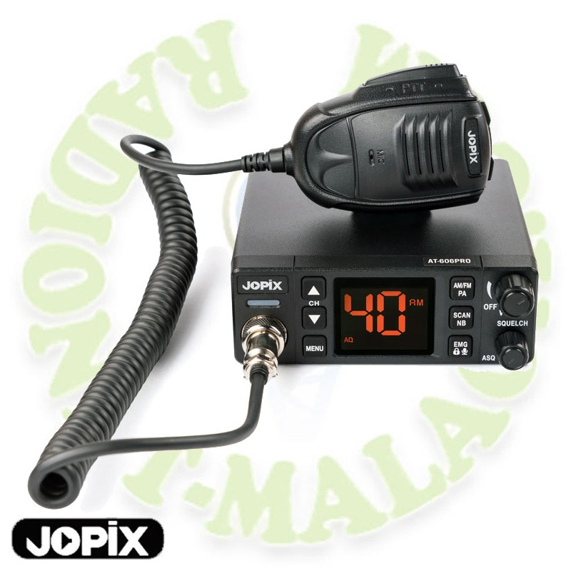 La Jopix AT-606PRO es un emisora de CB (banda ciudadana) multinorma Europea FM/AM con una gran display LCD, tamaño compacto y de gran sencillez de utilización apta para ser utilizada en cualquier lugar del vehículo.