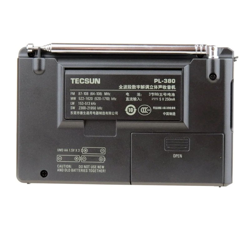 El TECSUN PL‑380 es un receptor multibanda portátil de tamaño compacto, diseñado para entusiastas de la radio, viajeros y amantes de la recepción internacional. Gracias a su chip DSP Silicon Labs Si4734 y sintonía PLL, ofrece una excelente sensibilidad, selectividad y reducción de ruido en FM estéreo, onda larga (LW), media (MW) y corta (SW).